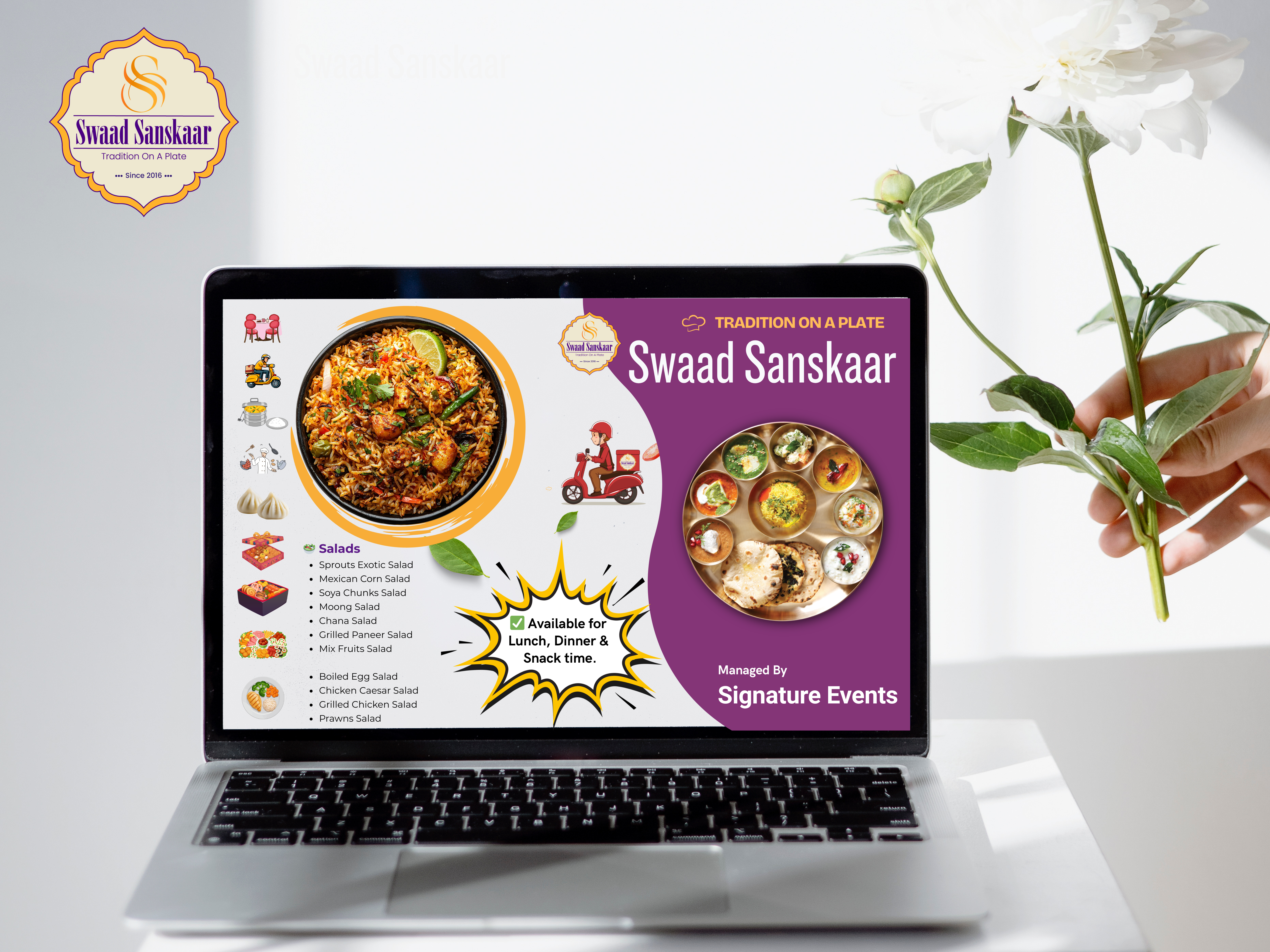 Transformed the existing food brand through complete rebranding, including new name, tagline, and logo design, creating a strong identity. Also executed restaurant branding for their corporate setup, covering kiosk and internal branding. Continuing our association with packaging, promotional merchandise, social media management, and business promotion to drive consistent growth.
